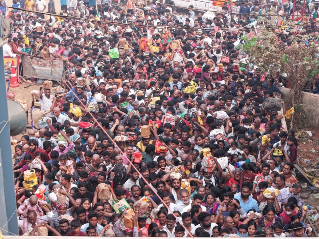 మేడారంలో గంట గంటకు పెరుగుతున్న భక్తులు Published By aksharasaval January 30, 2026 0 55 FacebookTwitterPinterestWhatsAppLinkedinPrintTelegram అక్షర సవాల్ అప్డేట్స్ గంట గంటకు పెరుగుతున్న భక్తులు మేడారం/మంగపేట, జనవరి 30, అక్షర సవాల్: శ్రీ మేడారం సమ్మక్క సారలమ్మ జాతరకు శుక్రవారం మూడవరోజు అమ్మవారిని దర్శించుకోవడానికి వచ్చిన లక్షలాది మంది భక్తులతో గద్దెల ప్రాంగణం జన సముద్రంగా మారింది. Share FacebookTwitterPinterestWhatsAppLinkedinPrintTelegram Related Articles బిగ్ బ్రేకింగ్ రేపు అద్దె బస్సులు బంద్ బిగ్ బ్రేకింగ్ అగ్గువ అగ్గువ అగ్గువా… టాప్ స్టోరీస్ ప్రకృతి అందాలు చూడతరమా…! Latest Articles బిగ్ బ్రేకింగ్ రేపు అద్దె బస్సులు బంద్ బిగ్ బ్రేకింగ్ అగ్గువ అగ్గువ అగ్గువా… టాప్ స్టోరీస్ ప్రకృతి అందాలు చూడతరమా…! బిగ్ బ్రేకింగ్ ఆఖరి ఘట్టానికి చేరుకున్న మేడారం మహా జాతర బిగ్ బ్రేకింగ్ వనదేవతల సన్నిధిలో తెలంగాణ రాష్ట్ర గవర్నర్ Load more