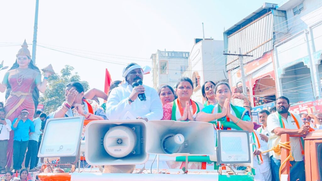 నర్సంపేట, ఫిబ్రవరి10 అక్షర సవాల్: నర్సంపేట పట్టణంలోని ప్రతి గల్లీలో నిర్మాణంలో ఉన్న సీసీ రోడ్లు,డ్రైనేజీ పనులు ప్రతిపక్ష బీఆర్ఎస్ నాయకులకు కనిపించడం లేదా అని నర్సంపేట ఎమ్మెల్యే దొంతి మాధవరెడ్డి ప్రశ్నించారు. మున్సిపల్ ఎన్నికల ప్రచారం చివరి రోజు వరంగల్ చౌరస్తా నుంచి అంబేద్కర్ విగ్రహం వరకు పార్టీ కార్యకర్తలు,నాయకులతో కలిసి భారీ రోడ్షో,ర్యాలీ నిర్వహించారు. ఈ సందర్భంగా ఆయన మాట్లాడుతూ నర్సంపేట పట్టణ అభివృద్ధికి సుమారు140 కోట్ల రూపాయలతో పలు అభివృద్ధి పనులు చేపట్టామని,దాదాపు అన్ని వార్డుల్లో పనులు కొనసాగుతున్నాయని తెలిపారు. రాష్ట్రంలో కాంగ్రెస్ ప్రభుత్వం అధికారంలో ఉండగా,తాను ఎమ్మెల్యేగా,బలరాం నాయక్ ఎంపీగా ఉన్న నేపథ్యంలో మున్సిపల్ ఎన్నికల్లో కాంగ్రెస్ అభ్యర్థులను 30కి 30 స్థానాల్లో గెలిపించాలని ప్రజలను కోరారు. గత బీఆర్ఎస్ ప్రభుత్వంపై విమర్శలు చేస్తూ,పదేళ్ల పాలనలో నర్సంపేట నియోజకవర్గంలో ఒక్క ఇల్లు కూడా ఇవ్వలేదన్నారు.కాంగ్రెస్ ప్రభుత్వం ఏర్పడిన తర్వాత పట్టణంలోని విలీన గ్రామాలతో కలిపి 1,100 ఇండ్లను మంజూరు చేశామని చెప్పారు అలాగే గతంలో రేషన్ కార్డుల విషయంలో నిర్లక్ష్యం జరిగిందని,ఇప్పుడు కొత్తగా 1,500 రేషన్ కార్డులు మంజూరు చేశామని,ఉగాది తర్వాత నూతన పెన్షన్లు అందిస్తామని పేర్కొన్నారు.మౌలిక సదుపాయాల అభివృద్ధిలో భాగంగా నర్సంపేట-వరంగల్ నాలుగు లైన్ల రహదారి,నర్సంపేట-నెక్కొండ 10 మీటర్ల రహదారి,అలాగే నర్సంపేట-గూడూరు,నర్సంపేట-కేసముద్రం రహదారులు మంజూరు చేసినట్లు తెలిపారు. మెడికల్ కాలేజ్ విషయంపై మాట్లాడుతూ బీఆర్ఎస్ ప్రభుత్వం కేవలం ఆసుపత్రి భవనం మాత్రమే నిర్మించి అసంపూర్తిగా వదిలేసిందని,కాంగ్రెస్ ప్రభుత్వం వచ్చాక మిగిలిన పనులు పూర్తి చేసి ప్రారంభించామని చెప్పారు.మెడికల్ కాలేజ్ నిర్మాణానికి 100 కోట్ల రూపాయలు మంజూరు చేసి టెండర్ ప్రక్రియ పూర్తి చేశామని,త్వరలో పనులు ప్రారంభమవుతాయని తెలిపారు.నర్సంపేట మున్సిపల్ ఎన్నికల్లో కాంగ్రెస్ అభ్యర్థులను భారీ మెజారిటీతో గెలిపించి పట్టణ అభివృద్ధికి తోడ్పడాలని ప్రజలను కోరారు. ఈ కార్యక్రమంలో కాంగ్రెస్ పార్టీ ముఖ్య నాయకులు,కార్యకర్తలు తదితరులు అధిక సంఖ్యలో పాల్గొన్నారు.