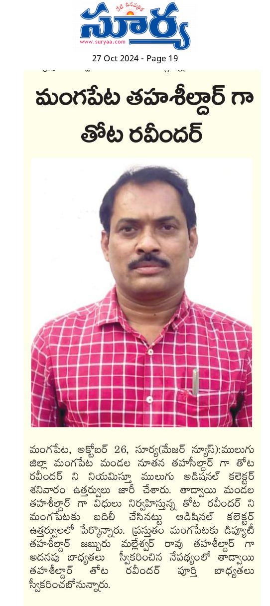 భూపాలపల్లి జిల్లా అదనపు ఎస్పీ అడ్మిన్ గా నరేష్ కుమార్