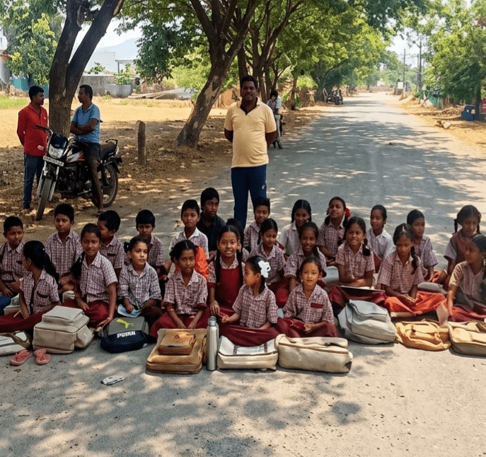 ములుగు/మంగపేట, ఏప్రిల్ 13, అక్షర సవాల్: ములుగు జిల్లా వెంకటాపురం మండలం బోధపురం ప్రభుత్వ పాఠశాల విద్యార్థులు తమ సమస్యల పరిష్కారం కోసం వినూత్న రీతిలో నిరసన చేపట్టారు. పాఠశాల భవనం శిథిలావస్థకు చేరడంతో ప్రాణభయంతో గడుపుతున్నామని, వెంటనే కొత్త భవనాన్ని నిర్మించాలని విద్యార్థులు డిమాండ్ చేశారు. అంతేకాకుండా పాఠశాలలో ఖాళీగా ఉన్న ఉపాధ్యాయ పోస్టులను భర్తీ చేసి రెగ్యులర్ టీచర్లను నియమించాలని కోరుతూ స్కూల్ బ్యాగులతో ప్రధాన రహదారిపై బైఠాయించి ధర్నా నిర్వహించారు.ఈ నిరసన కారణంగా ప్రధాన రహదారిపై వాహనాల రాకపోకలకు కొంతసేపు అంతరాయం కలిగింది. తమ సమస్యలు పరిష్కరించే వరకు వెనక్కి తగ్గేది లేదని విద్యార్థులు ఈ సందర్భంగా స్పష్టం చేశారు