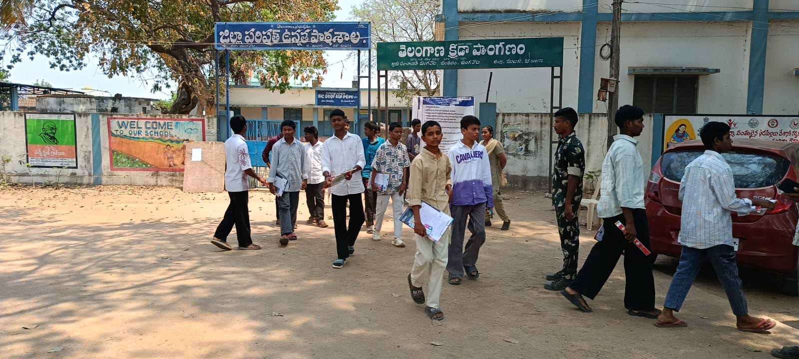 మొదటి రోజు పరీక్ష రాసి బయటికి వస్తున్న విద్యార్థులు