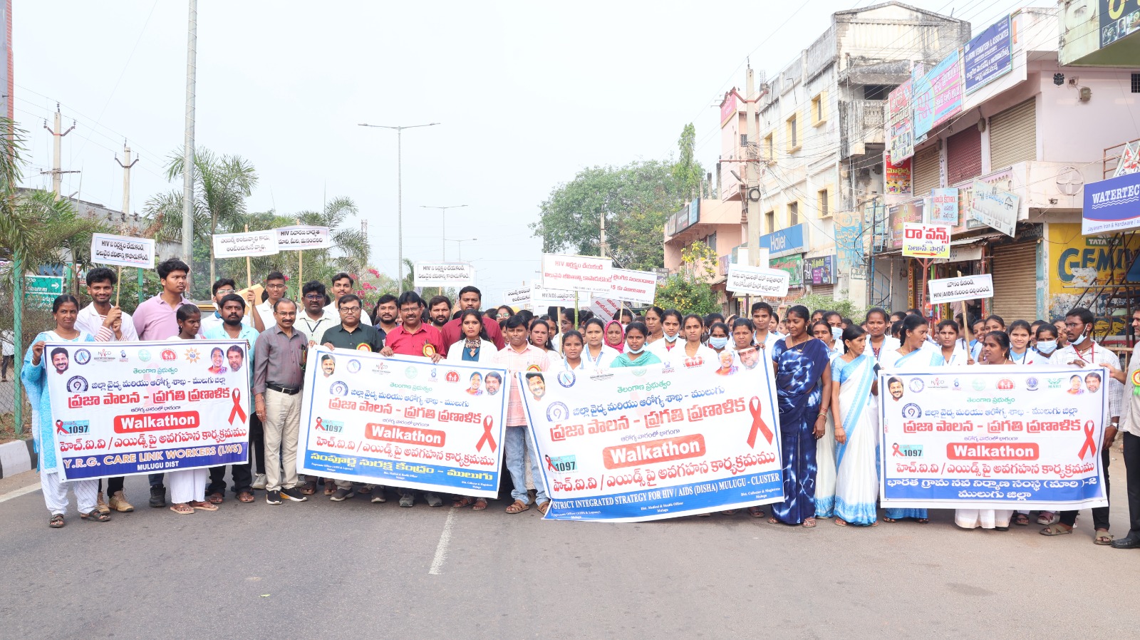 ములుగు ప్రతినిధి/మంగపేట, ఏప్రిల్ 09, అక్షర సవాల్: జిల్లా కేంద్రంలో ప్రజా పాలన ప్రగతి ప్రణాళిక 99 రోజుల కార్యక్రమంలో హెల్త్- వీక్ లో భాగంగా  హెచ్ఐవి మరియు ఎయిడ్స్ పై అవగాహన కార్యక్రమాలు హెచ్ఐవి స్క్రీనింగ్ క్యాంపులు వాక్ తాన్ నిర్వహించడం జరిగిందని జిల్లా వైద్య ఆరోగ్యశాఖ అధికారి డాక్టర్ గోపాల్ రావు పత్రికా ప్రకటనలో తెలిపారు.గురువారం ములుగు డిఎం ఎండ్ ఎచ్ ఓ గోపాలరావు జి జి హెచ్ ఆసుపత్రి సూపరింటెండెంట్ డాక్టర్ చంద్రశేఖర్ లు జండా ఊపి ర్యాలీని ప్రారంభించారు. ఈ సందర్భంగా  డిఎం హెచ్వో డాక్టర్ గోపాల్ రావు మాట్లాడుతూ హెచ్ఐవి ఎయిడ్స్ వ్యాధి లక్షణాలు పరీక్షల నివారణ చర్యలు కౌన్సిలింగ్ సెంటర్లు మరియు చికిత్స గురించి ప్రజలకు అవగాహన కార్యక్రమాల ద్వారా చైతన్యవంతులను చేయాలని తెలిపారు. ఎయిడ్స్ నివారణలో ప్రజలు ప్రజాప్రతినిధులు యువజన సంఘాలు స్వచ్ఛంద సంస్థలు కలిసికట్టుగా పనిచేసినప్పుడే ఈ వ్యాధిని వారించవచ్చునని వివరించారు.గ్రామాలలో హెచ్ఐవి ఎయిడ్స్ వ్యాధి గురించి గ్రామసభలలో ఇతర మీటింగ్ లలో మాట్లాడాలని తెలిపారు హెచ్ఐవి ఎయిడ్స్ వ్యాధి అనేది ఒక వైరస్ వల్ల ఒకరి నుండి ఇంకొకరికి హెచ్ఐవి వైరస్ కలిగిన రక్త మార్పిడి వల్ల కలుషితమైన సిరంజిలా వల్ల సురక్షితం కానీ సంభోగం వల్ల ఒకరి నుండి ఇంకొకరికి వ్యాప్తి చెందుతుందని కరచాలనము టాయిలెట్స్ ఈ వ్యాధి వ్యాప్తి చెందని వివరించారు.అనంతరం జిజిహెచ్ లో ఏర్పాటుచేసిన అవగాహన కార్యక్రమాల్లో జిజిహెచ్ సూపరిండెంట్ డాక్టర్ చంద్రశేఖర్ మాట్లాడుతూ ప్రతి ఒక్క గర్భిణీ స్త్రీ హెచ్ఐవి పరీక్షలు చేసుకోవాలని పోషకాహారం తీసుకోవాలని తెలిపారు.డిఎం అండ్ హెచ్ ఓ, జిజిహెచ్ సూపరిండెంట్ మైత్రి ట్రాన్స్ క్లినిక్ ను సందర్శించి ట్రాన్స్ జెండర్స్ ఈ క్లినిక్ సేవలను వినియోగించుకోవాలని ఈ క్లినిక్ ప్రతి గురువారము ట్రాన్స్ జెండర్స్ కు వైద్య సేవలు అందిస్తుందని వివరించారు. హెచ్ఐవి ఎయిడ్స్ ర్యాలీ జిజిహెచ్ ములుగు నుండి డిఎల్ఆర్ ఫంక్షన్ వరకు నినాదాలతో నిర్వహించారు మానవహారాన్ని నిర్వహించారు.ఈ కార్యక్రమంలో జిల్లా ప్రోగ్రాం అధికారి డాక్టర్ నాగనేష్ మెడికల్ కాలేజ్ వైస్ ప్రిన్సిపాల్ డాక్టర్ లక్పతి, ఫిజీషియన్ డాక్టర్ బిక్షపతి రావు, నర్సింగ్ కాలేజ్ ప్రిన్సిపాల్ డాక్టర్ సుధా హెల్త్ ఎడ్యుకేషన్ భాస్కర్ హెచ్ఐవి ఎయిడ్స్ కంట్రోల్ డిస్టిక్ కోఆర్డినేటర్ జ్యోతి, రాయినిగూడెం ప్రాథమిక ఆరోగ్య కేంద్రం సిబ్బంది ప్రభుత్వ నర్సింగ్ కాలేజ్ విద్యార్థులు, మెడికల్ కాలేజ్ విద్యార్థులు, స్టాఫ్ నర్సులు,ఆశ వర్కర్లు,సిబ్బంది, మరియు హెచ్ఐవి మీద పనిచేస్తున్న దిశ సిపిఎం జ్యోతి, ఐసీటీసీ కౌన్సిలర్లు ,స్వచంధ సంస్థలైన మారి, లింక్ వర్కర్స్