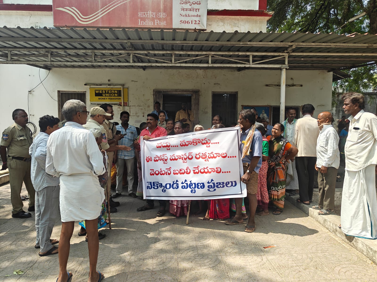 పోస్టుమాస్టర్పై ప్రజల ఆందోళన